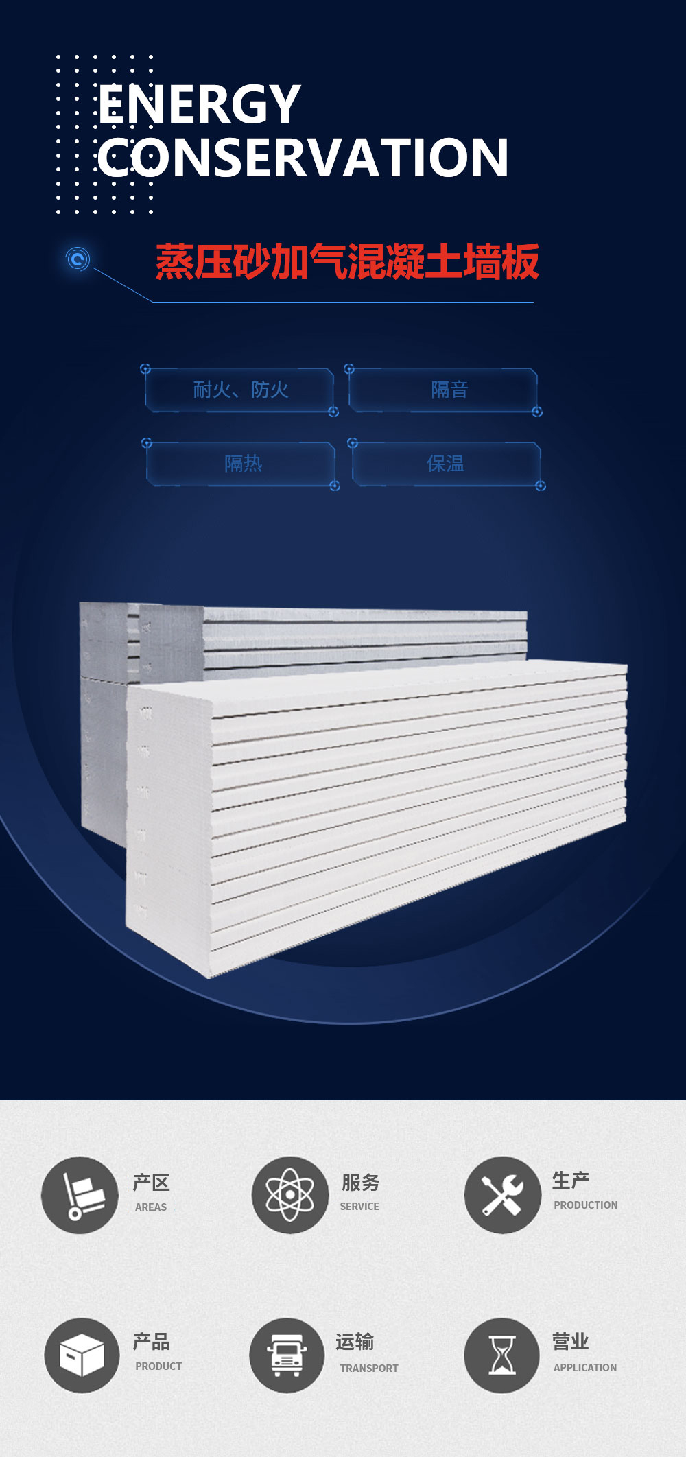 蒸壓加氣混凝土板材是以硅砂(粉煤灰)、水泥、石灰為主要原料,由經(jīng)過防銹處理的鋼筋增強,經(jīng)過高溫、高壓、蒸汽養(yǎng)護而成的多氣孔混凝土制品。其隔音與吸音性能俱佳,具有很好的耐火、防火、隔音、隔熱、保溫等性能;輕質(zhì)性比重為0.5,是普通混凝土的1/4,降低了墻體的自重,減低建筑物基礎造價。產(chǎn)品有外墻板、內(nèi)墻板、樓層板和屋面板。